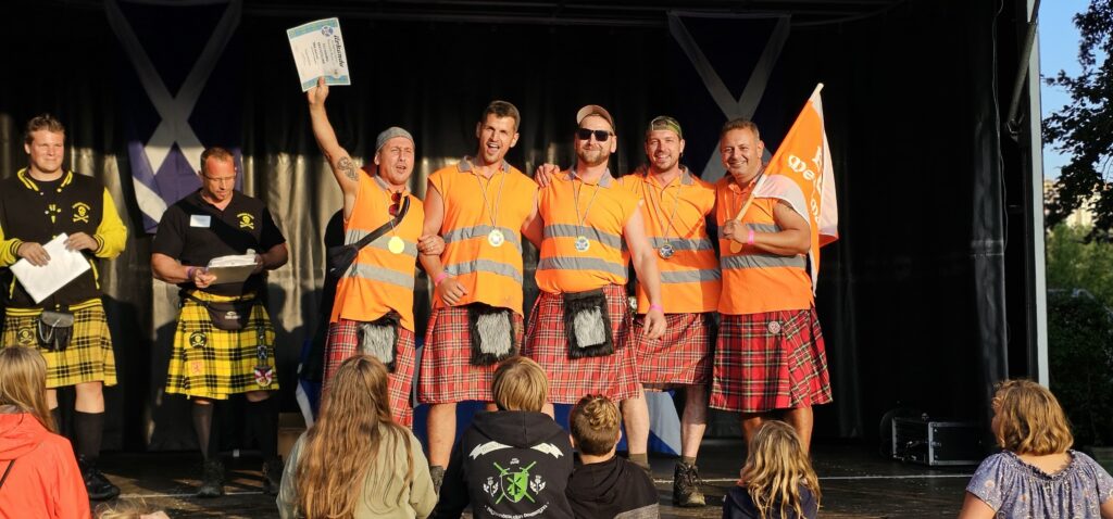 In diesem Jahr wurden die Landesmeisterschaften in Wuppertal ausgetragen – und das Mettmanner Team, die BBH Warriors, landete bei seiner Premiere am Ende auf einem großartigen achten Platz. Eine tolle Leistung, weil die Mannschaft mit vier Athleten zu den Games gereist war, die zuvor noch nie dabei waren. Da staunten selbst die etablierten Teams nicht schlecht über das Abschneiden der Mettmanner Männer vom Baubetriebshof, weil sie direkt unter den besten zehn von insgesamt 19 Teams landeten. Beim Team-Wettbewerb der Highland-Games werden Wettkämpfe in elf Spielen durchgeführt, darunter Baumstammwerfen, Tauziehen, Gewicht hochwerfen, Steinstoßen und Gewichtweitwerfen.